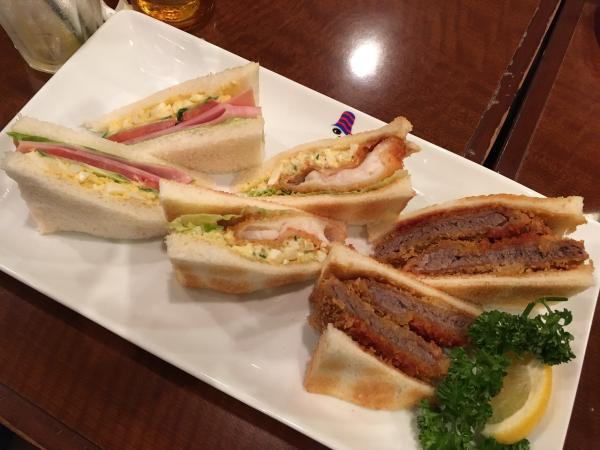 パンは薄いのですが、ぶ厚いカツをはさんでいるのが対照的なサンドイッチです。厚切りロースカツサンドは、なかなかの重量感、かつジューシーで柔らかく、美味しさ抜群です。ヘレカツサンドなら持ち帰りもできます。